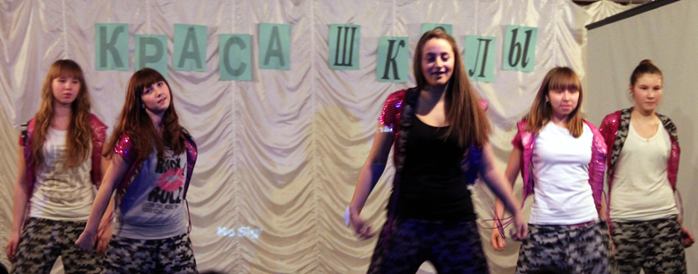 Участницы, тем временем, за сценой готовятся к конкурсу. Там я и встретила Алину Дементьеву, у которой решила выяснить, что творится в гримёрке: – В гримерке полный бардак! Все диваны и кресла завалены одеждой, реквизитом. Очень хочется пить. Все вспоминают слова или движения. Мне приходится ходить и подбадривать участниц, так как я понимаю, что они испытывают большое волнение и беспокойство, ведь это так нелегко. До конкурса оставалось 10 минут, я прошла на своё место. В зале, по-прежнему, шумно: все разговаривают и смеются. И вот, наконец, раздалась мелодия, предвещающая начало праздника. Зал окутала тишина. Ведущие произносят свою речь. Когда они представили судей конкурса, в состав которых входили и учителя, и гости школы, наступил долгожданный момент. Ведущие объявляют участниц конкурса. С их выходом на сцену, в зале раздаются бурные аплодисменты. По очереди выходили девушки в красивых платьях, с красивым макияжем и прическами. Переборов волнение, участницы вышли и продемонстрировали свои наряды. Следующий этап – демонстрация визитки. Номера все разные: конкурсантки и пели, и танцевали. Зрители смотрели выступления, поддерживая участниц аплодисментами. Жюри выставляли свои оценки. Следом был фотоконкурс. Девушки демонстрировали фотографии, сделанные ещё до конкурса. Но это было не просто позирование. Организаторы дали задание: изобразить стиль прошлого века, что участницы и продемонстрировали на фото. К выполнению этого задания, также как и к остальным, надо было приложить большое усердие и показать свои творческие способности. Никто не остался позади, все справились с заданием, в результате чего, мы, зрители, увидели интересные фотосеты. Дальше был творческий конкурс. Он мало отличался от демонстрации визитки: конкурсантки так же показывали то, на что способны. Судьи, как и в предыдущих этапах, выставили оценки. Ведущие объявили последнее задание. В зале немного погасили свет... Задание было таким: девушки должны были рассказывать. Рассказывали легенды, истории, притчи. В зале царила тишина. Когда истории закончились, и жюри выставили оценки, в зале зажгли свет, и на сцену вышла команды школьной лиги КВН от нашей школы «Для Галочки». Они взбодрили нас своими шутками, показывая весёлые миниатюры.