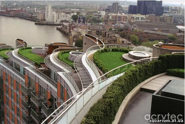 Озеленение крыш – неплохой способ улучшить экологическую обстановку в городе, кроме того «зелёные» крыши уменьшают затраты электроэнергии на кондиционирование, играя роль теплоизоляции.